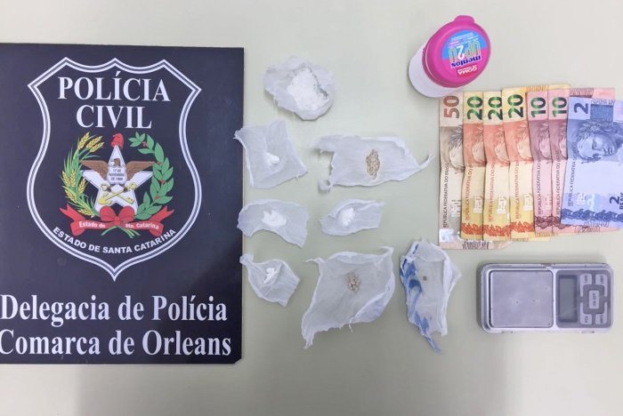 A operação continuou e com a ajuda do Canil (K9) da Polícia Militar de Criciúma, por intermédio do Tenente Arent, da Polícia Militar de Orleans, foram encontrados nos fundos da lavação um pote de "Mentos" que continha em seu interior buchas de substância semelhante a cocaína, bem como em um outro lugar, próximo da droga, foi encontrada uma balança de precisão.