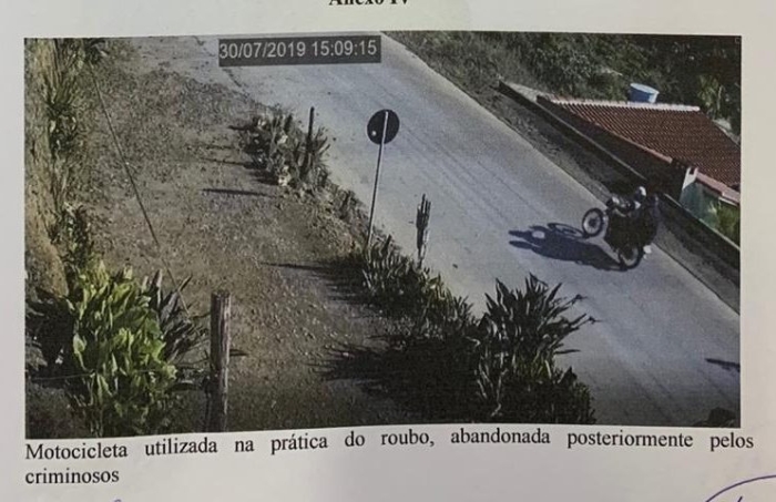 Após a fuga os criminosos esconderam a motocicleta Honda CG 125, placa MBR-6125, um dos capacetes usados no crime e uma camiseta, na comunidade de Taipa, no meio do mato, sendo que através de consulta constatou-se que ela não apresentava registro de roubo, recebendo, ato contínuo, o apoio de um terceiro, que com um carro preto apoio na fuga. Posteriormente, pelas filmagens descobriu-se se tratar de um VW/Voyage, com rodas pretas.