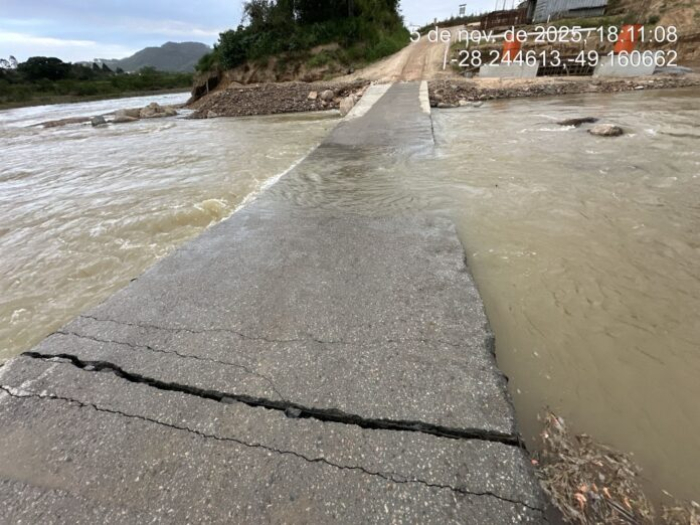 “Com a alteração do curso do rio para execução da nova ponte de concreto armado, houve movimentação da estrutura da ponte baixa existente. Somado às chuvas e ao tráfego indevido de veículos pesados, a estrutura chegou ao seu limite. Agora é uma questão de preservar vidas, e não há mais condições de passagem.”