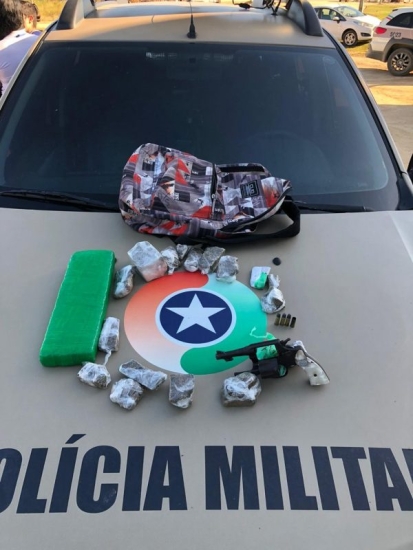 Após realizar novas buscas nas proximidades, os policiais localizaram os objetos. Dentro da bolsa estava a maconha fracionada em um tablete grande e mais 19 em porções de diversos tamanhos. O revólver, com três munições intactas e uma deflagrada, estava há três metros da mochila.
